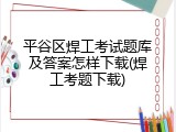 平谷区焊工考试题库及答案怎样下载(焊工考题下载)