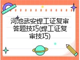 河池武安焊工证复审答题技巧(焊工证复审技巧)