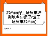 黔西南焊工证复审培训地点在哪里(焊工证复审黔西南)