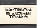 - 海南焊工操作证复审在什么地方(海南焊工证复审地点) 2025年11月03日