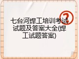 - 七台河焊工培训考试试题及答案大全(焊工试题答案) 2025年11月06日