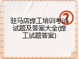驻马店焊工培训考试试题及答案大全综合评述焊工是现代工业生产中不可或缺的技术工种,其操作技能水平直接关系到工程质量和生产安全。驻马店作为河南省的重要工业城市,对高素质焊工的需求持续旺盛。驻马店地区的焊工培训考试体系严格遵循国家《特种作