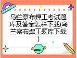 - 乌兰察布焊工考试题库及答案怎样下载(乌兰察布焊工题库下载) 2025年11月03日