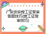 广安武安焊工证复审答题技巧(焊工证复审技巧)