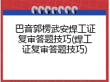 巴音郭楞武安焊工证复审答题技巧(焊工证复审答题技巧)