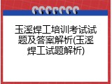玉溪焊工培训考试试题及答案解析(玉溪焊工试题解析)